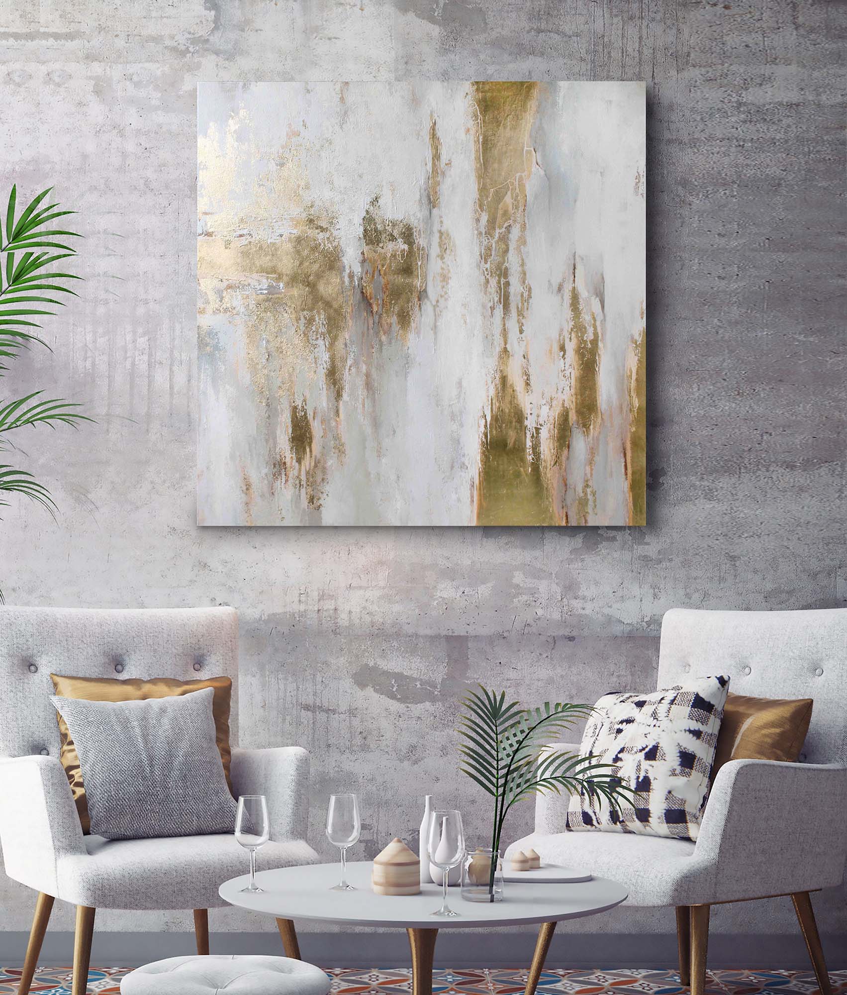 • Materials: Canvas, acrylic, gold leaf
